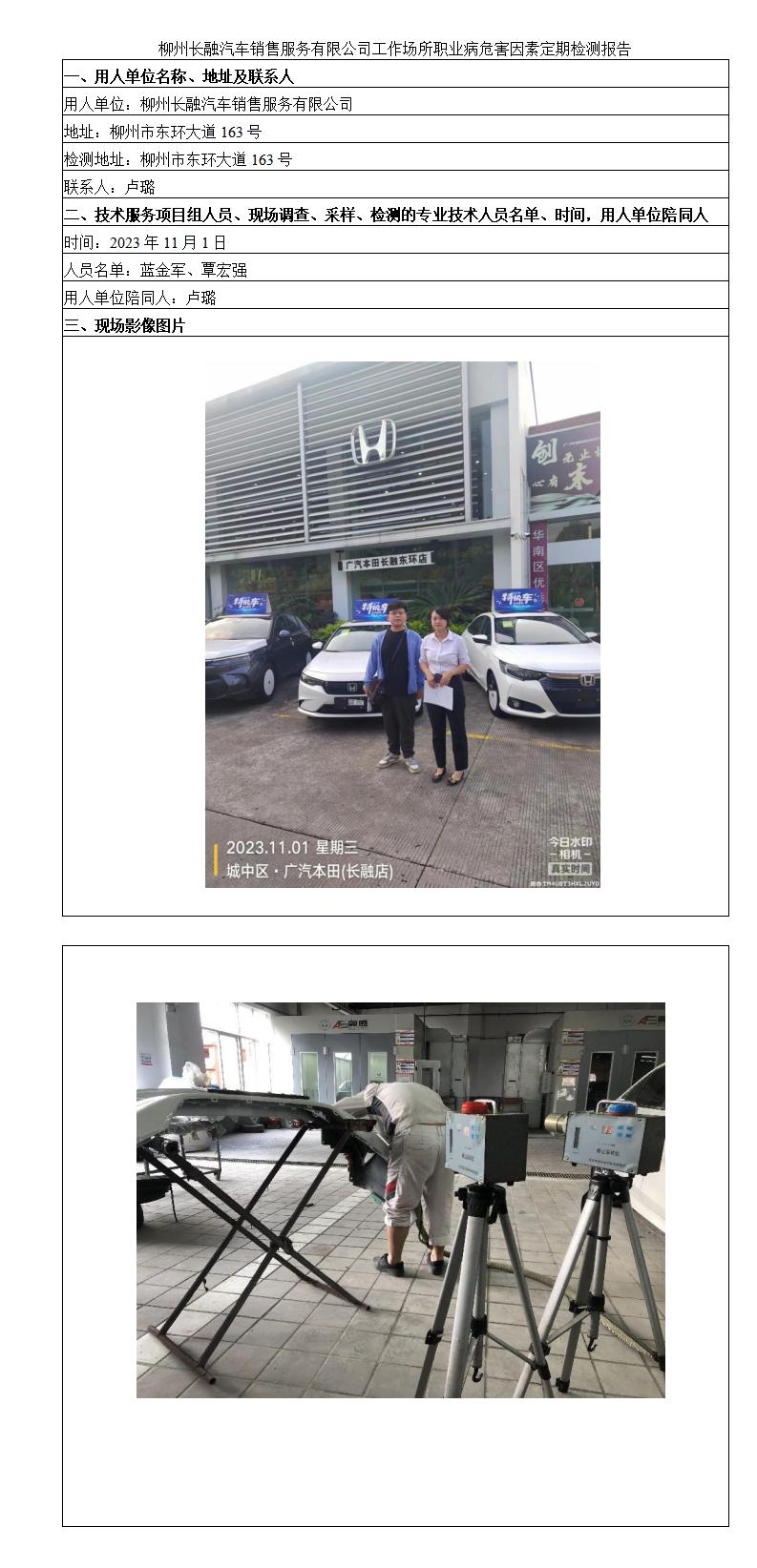 柳州長融汽車銷售服務有限公司工作場所職業(yè)病危害因素定期檢測報告